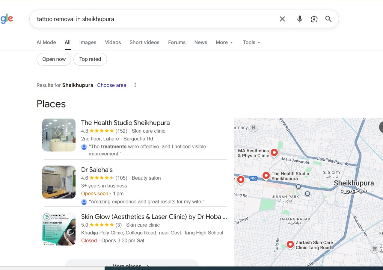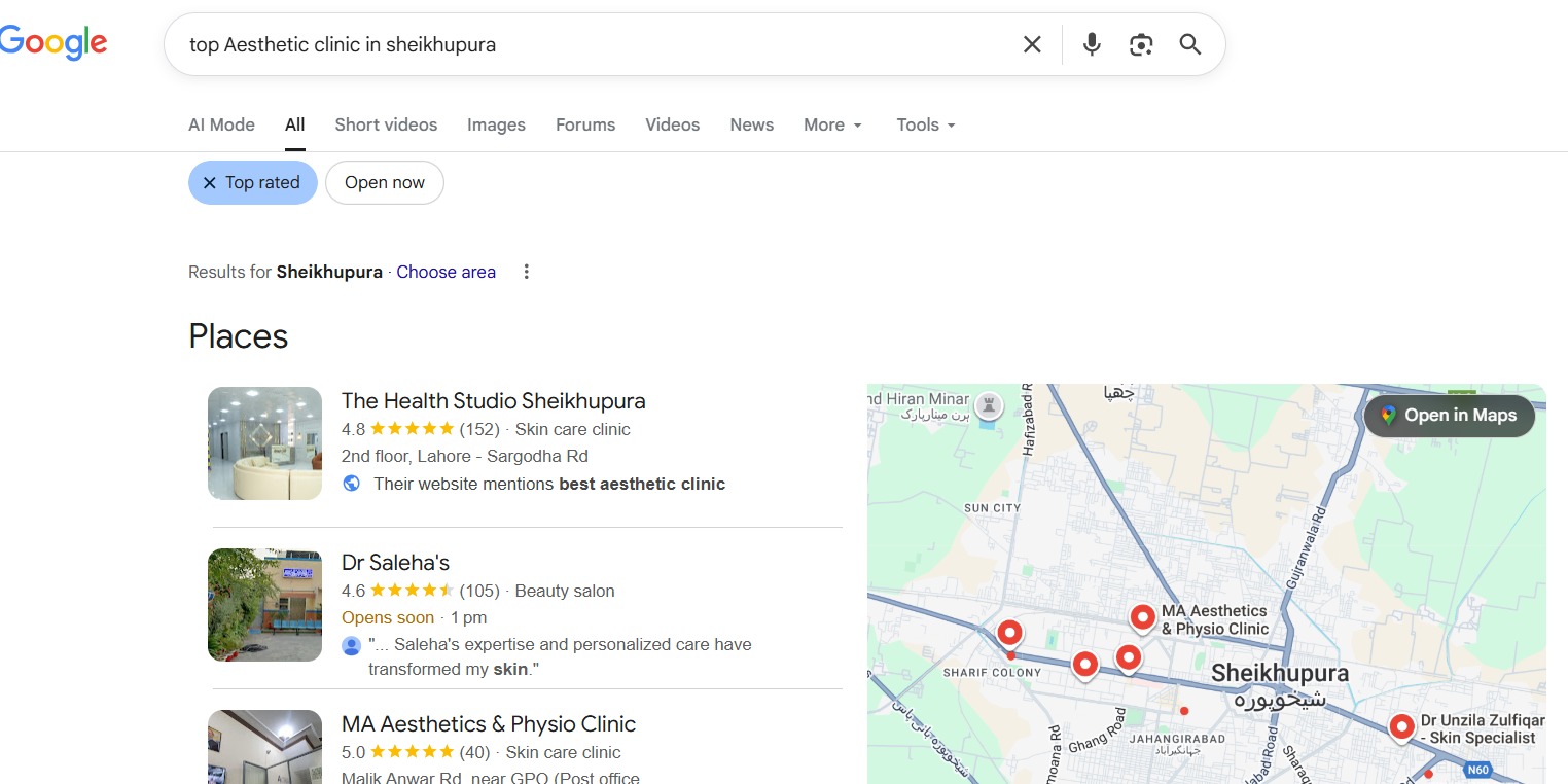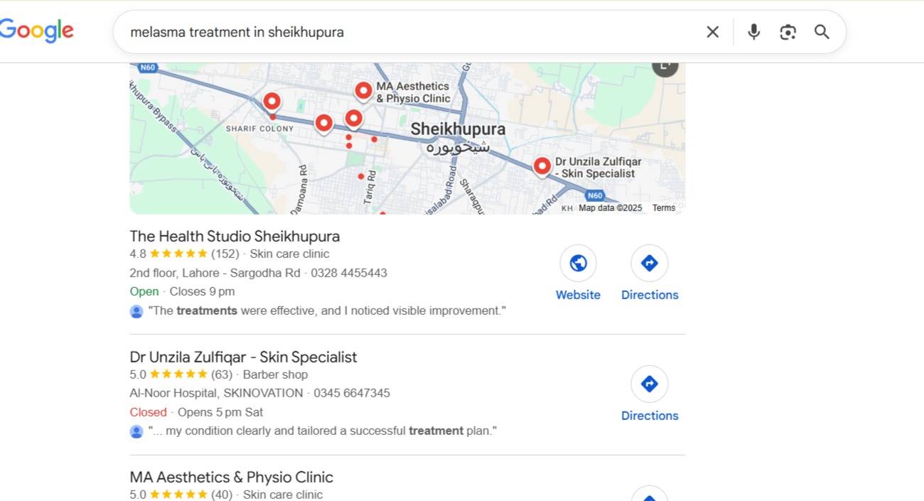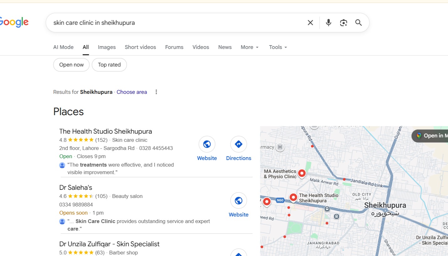 To position The Health Studio Sheikhupura as the leading aesthetic and skincare clinic in the city, we implemented a complete and structured local SEO system: