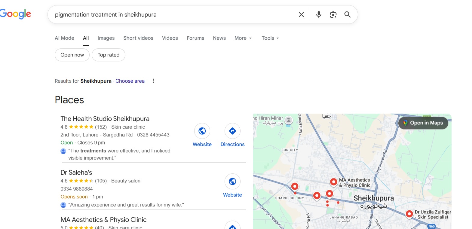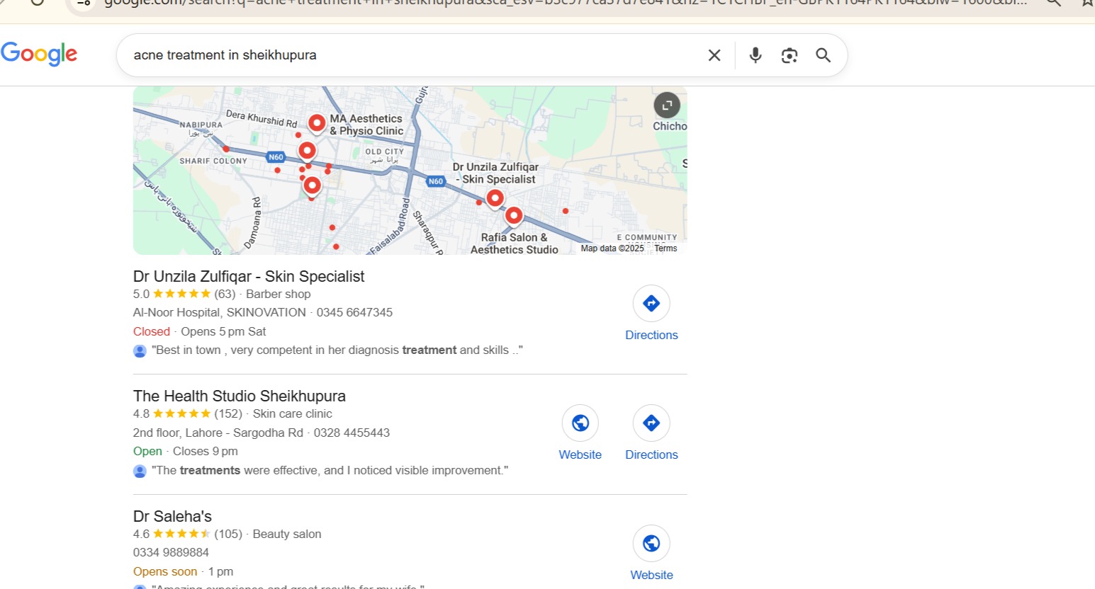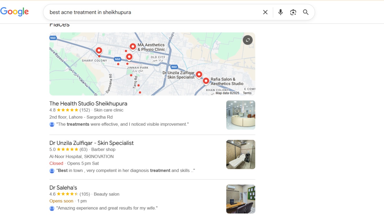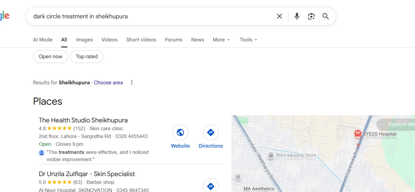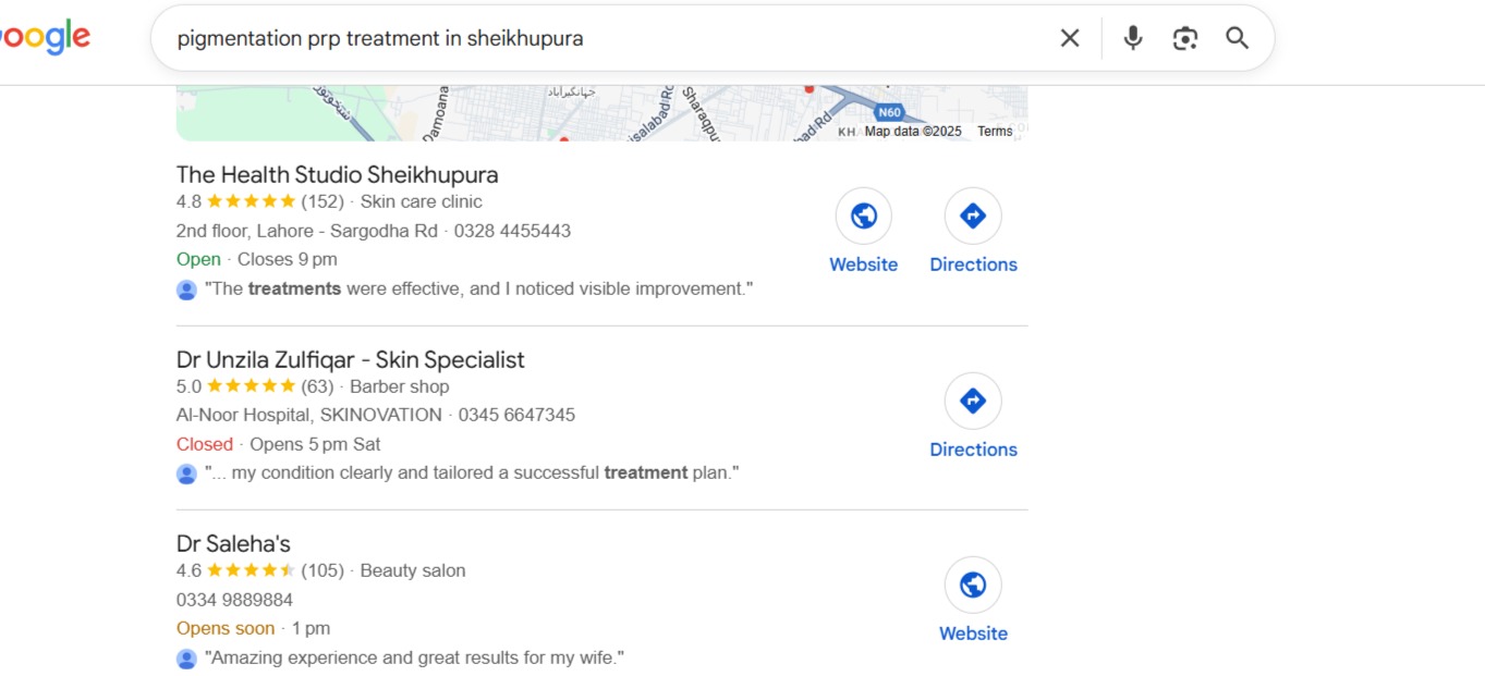 To position The Health Studio Sheikhupura as the leading aesthetic and skincare clinic in the city, we implemented a complete and structured local SEO system: