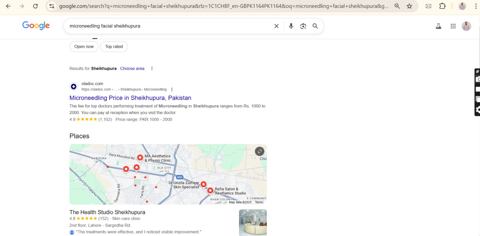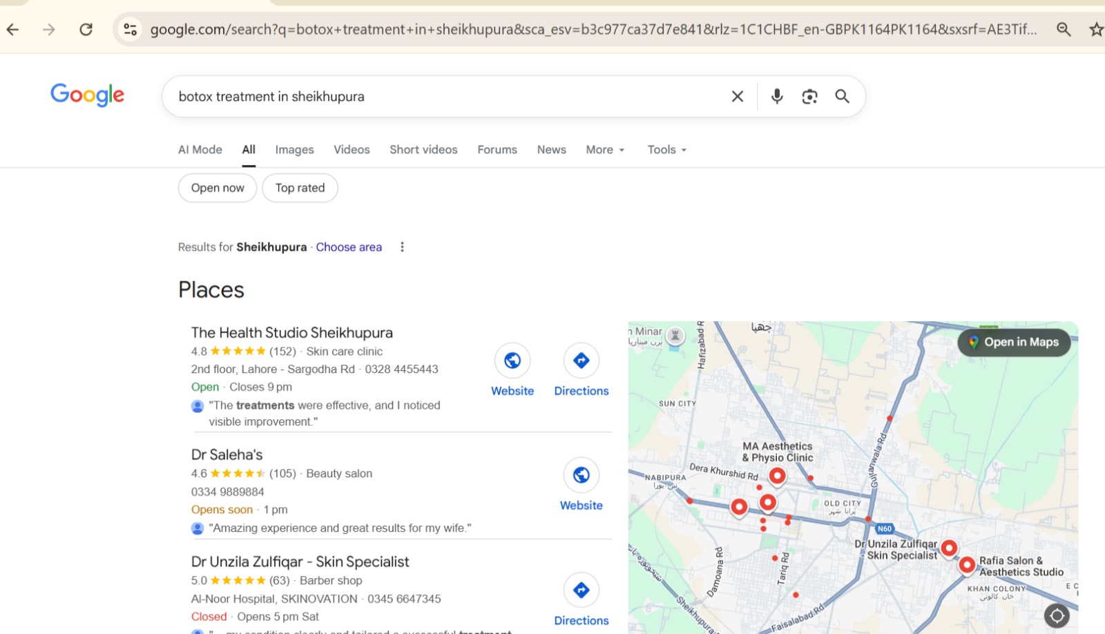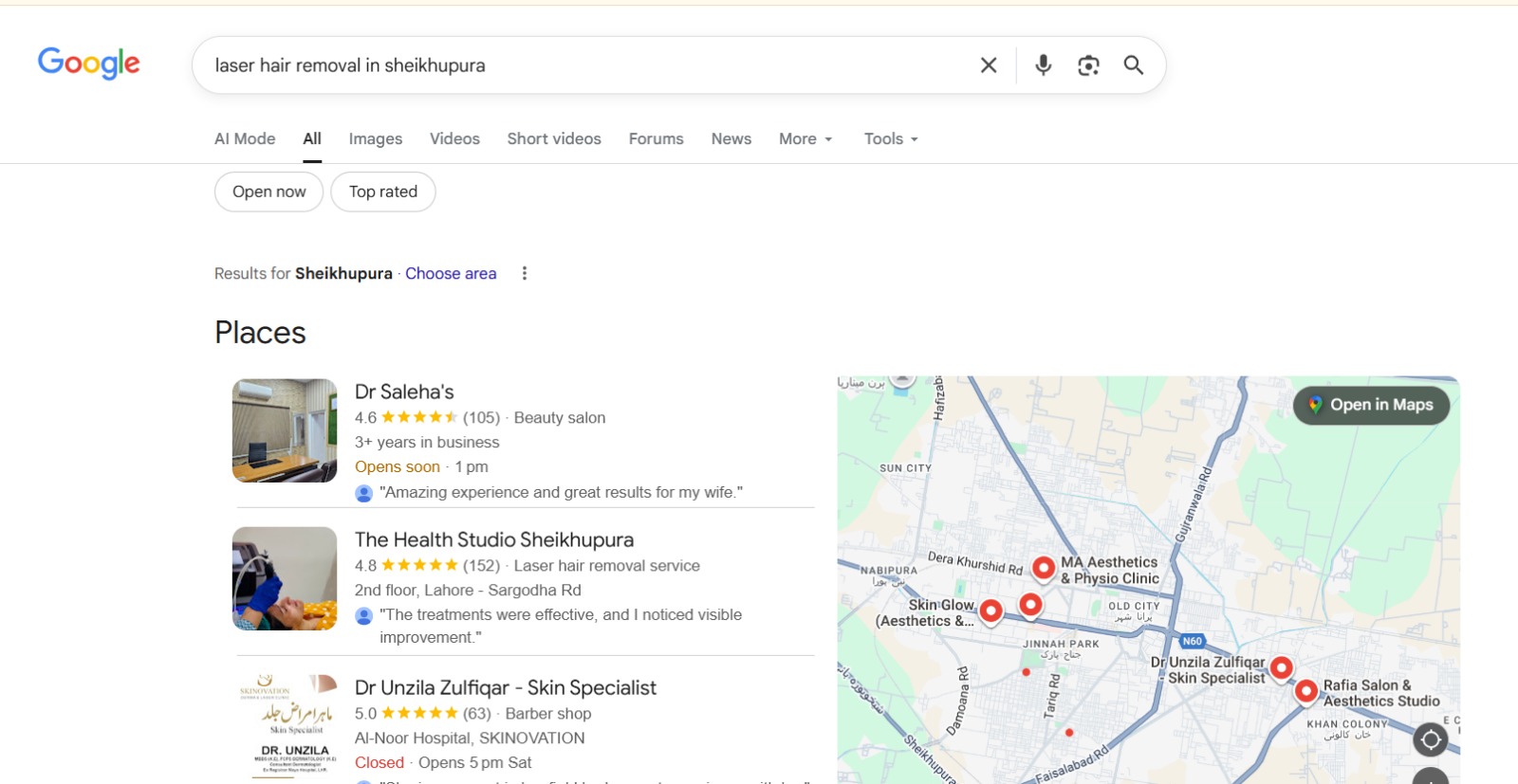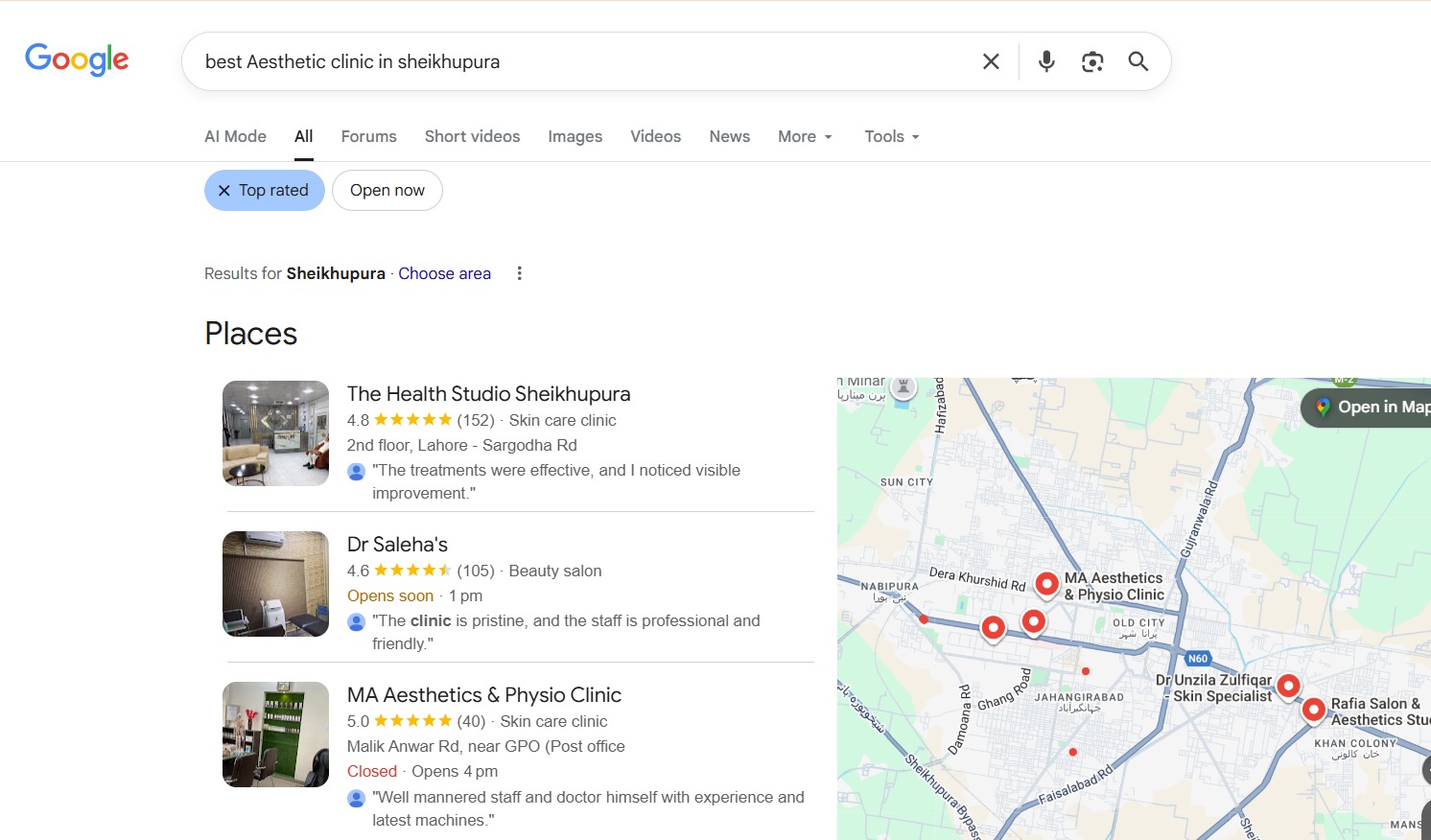 To position The Health Studio Sheikhupura as the leading aesthetic and skincare clinic in the city, we implemented a complete and structured local SEO system: