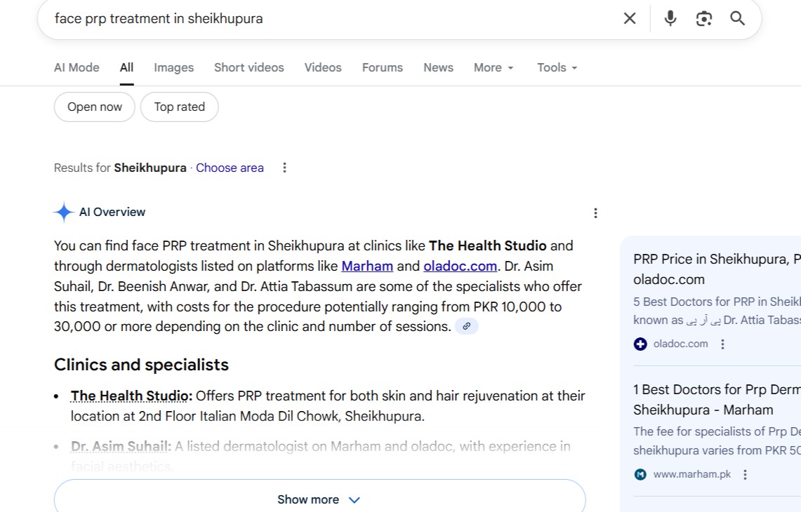 The Health Studio Sheikhupura is a modern aesthetic and skincare clinic offering advanced treatments including laser hair removal, HydraFacial, PRP for skin and hair, dermatology services, and a full range of cosmetic procedures. Although the Sheikhupura branch launched in February 2025, the clinic quickly understood the need for a strong digital footprint to compete in the rapidly growing local aesthetic market. With demand rising and multiple competitors in the region, the primary goal was to build visibility, generate patient inquiries, and establish online credibility from day one.