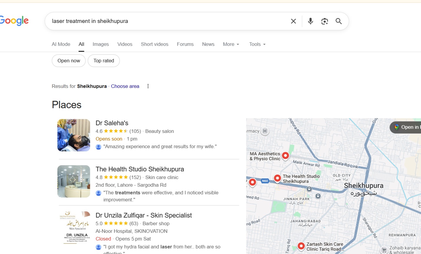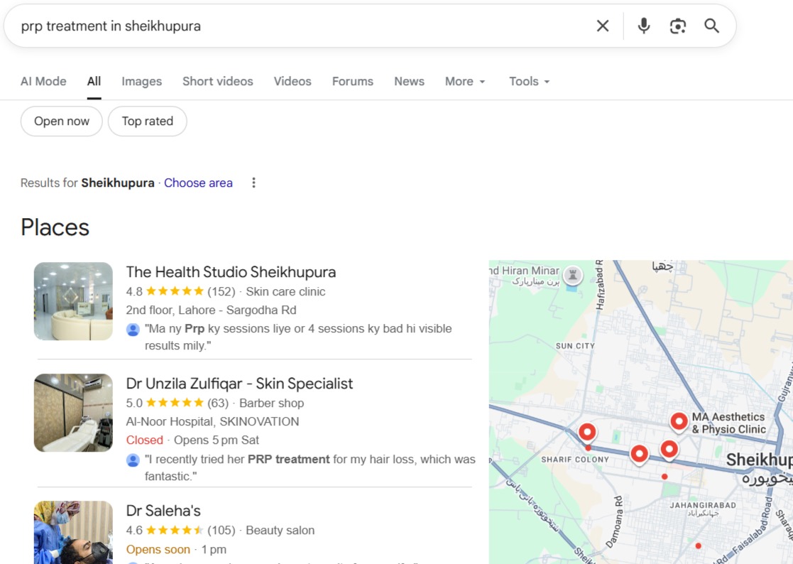 Fully optimized the Sheikhupura GMB profile with accurate NAP details, service listings, photos, categories, and appointment links.